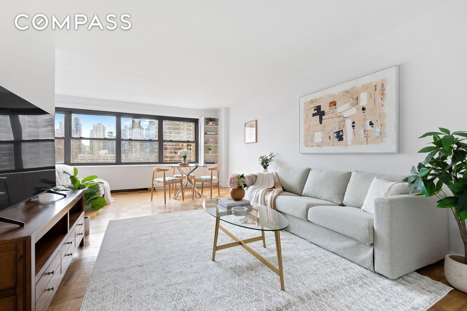 Step into Unit 12S at 142 West End Avenue on the 12th floor of the iconic Lincoln Towers Cooperative. This bright and airy alcove studio is all about comfort and style, boasting stunning city views through its south-facing windows. The open living and dining area, freshly painted, is perfect for hanging out or hosting friends. The sleeping alcove is a cozy nook that easily fits a queen-sized bed and nightstands.