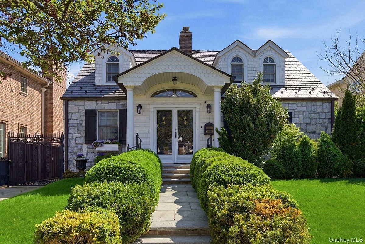Beautifully appointed expanded Cape-style in the coveted Robinwood section of Beechhurst, offering sun-filled interiors, oversized rooms, and hardwood floors throughout. An abundance of windows fills the home with natural light, most notably in the expansive main living area, where a dramatic wall of windows overlooks the private backyard and patio, creating a bright and inviting atmosphere. Exquisite lighting fixtures and statement chandeliers further enhance the home's elegance, casting a warm, sophisticated ambience throughout.