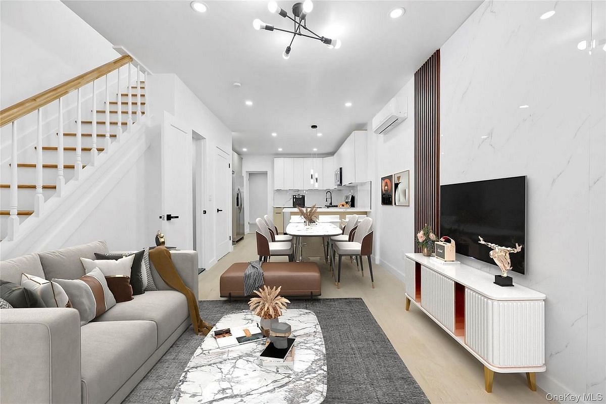 Renovations include brand new select wood flooring, recessed lighting, updated electrical, heating & plumbing systems throughout. Energy Efficient split unit central HVAC Systems.