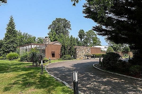 Built by award-winning architect George Nemeni, this stunning home sits on a flat, meticulously manicured property and offers the perfect blend of elegance and comfort. The main level features a spacious primary suite with full bath, three additional bedrooms, and two full baths. The sun-filled living room with fireplace opens to a private dining room with floor-to-ceiling windows, leading to a glass-enclosed sunroom and backyard.