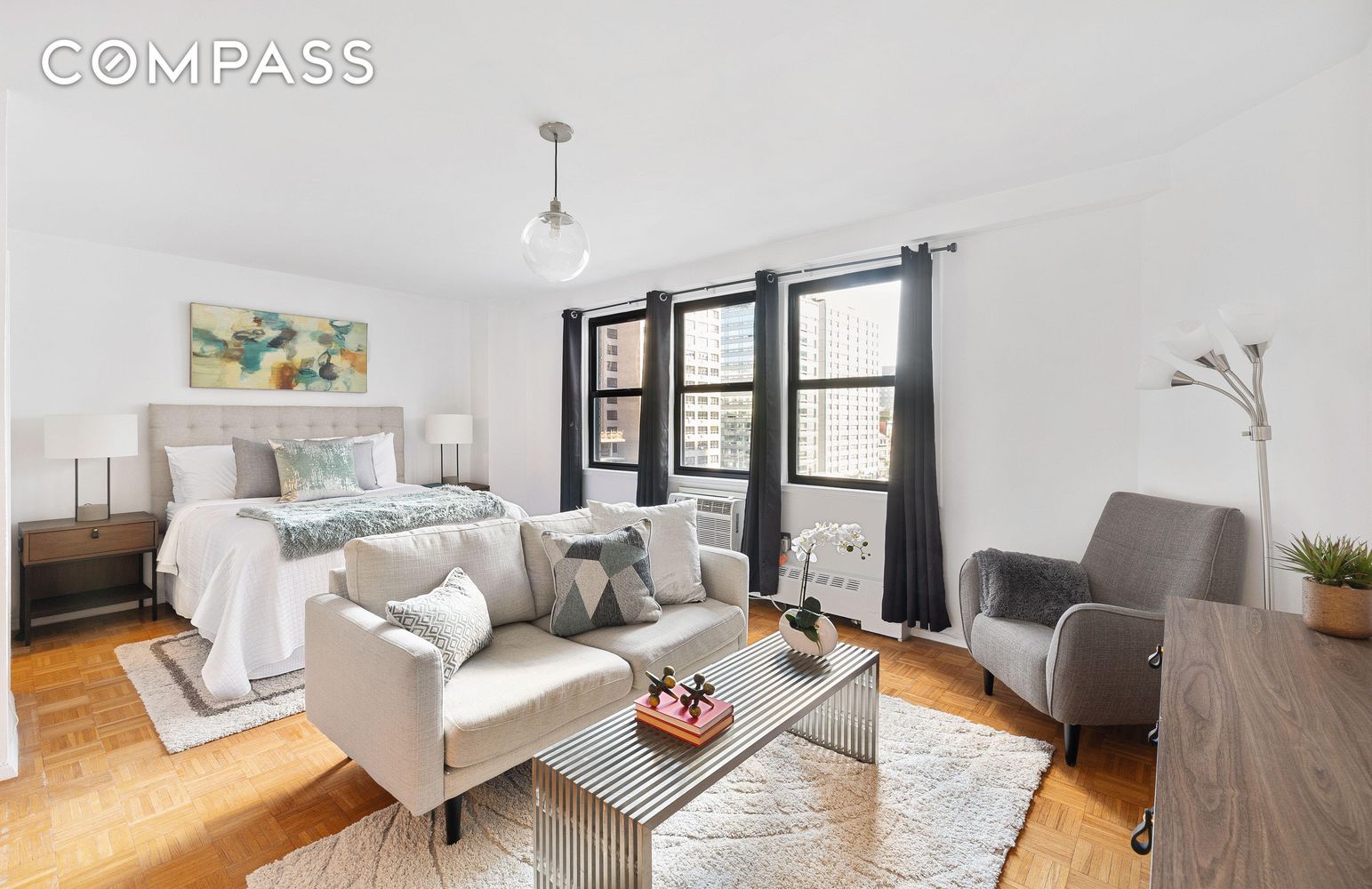 Beautiful and spacious alcove studio (convertible into a Junior 1 bedroom) Enter through a welcoming foyer with a large closet, leading to an open, sun-filled living/dining area. The sleek, modern kitchen boasts stainless steel appliances, beautiful shaker style cabinets, and gleaming countertops. The bright dining area flows seamlessly into the oversized living space, perfect for a large sofa and a dedicated home office. Enjoy the city views from the southern-facing windows that flood the apartment with natural light and a refreshing breeze. This oasis makes it easy to forget you're in the city that never sleeps.