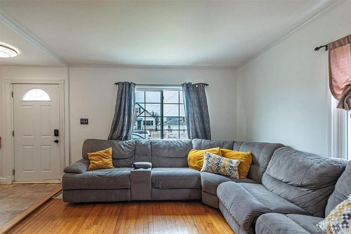Updated 4 bedroom, 2 bath Cape in the heart of Elmont. This move-in ready home offers a bright, comfortable layout with hardwood floors and a modern eat-in kitchen on the main level, along with two bedrooms and an updated full bath. Upstairs, you'll find two additional bedrooms with great built-in storage. The full basement, with its own outside entrance, gives you flexible extra space including a large recreation area and room for a home office/gym, dedicated laundry space and utilities. The backyard is spacious and ideal for relaxing or entertaining, and the extended driveway provides plenty of parking. Gas heating and cooking. Recent updates include a brand-new roof, Pella windows, updated electric, hot water tank, young boiler, and newer appliances. Close to shopping, public transportation, Hempstead Turnpike, and UBS Arena — ready for its next owner to enjoy.