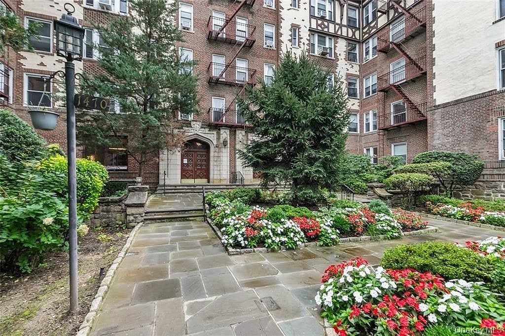 Spacious and well-maintained 1BR/1BA in the classic Bronxville Terrace building. This quiet, beautifully landscaped complex features a front garden, two large pine trees, ample outdoor lighting, and superb daily lawn maintenance. The unit offers high ceilings, crown molding, archways, and all new double-hung, tinted windows with 40% noise reduction. Three closets with double hanger bars provide excellent storage. Freshly painted and cleaned with upgraded bathroom. Original hardwood floors throughout. The oversized bedroom fits a California king. Apartment faces the peaceful backyard. Stove and refrigerator (3 years old) included As-Is.