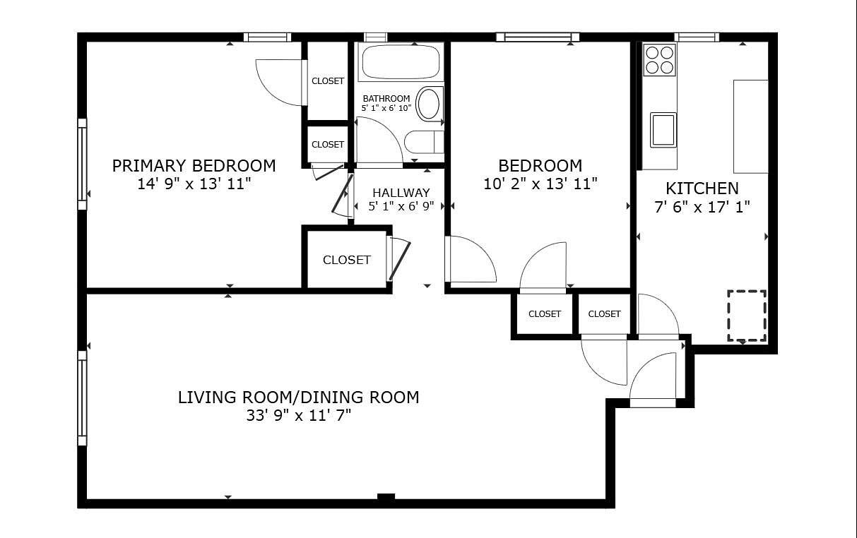 Location Location, ..Great Location large 2 bedrooms with 939 sq ft. walk to supermarket and 7 train . unit is move in condition . building Has ADA access outside and inside .