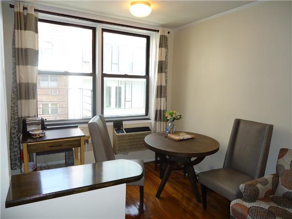 Rarely available sophisticated studio apartment in best location on the Upper East Side. This nicely renovated apartment offers a cozy living room with plenty of closets, bright open floor plan with high ceilings, a skylight in the bathroom, and custom cabinetry in the open kitchen. Expansive double windows also ensures natural sunlight fills the entire apartment. Perched on the 5th floor of a boutique elevator pre-war building with an elegant double entryway, nicely renovated and decorated hallways, and a laundry room in the secured, clean and bright basement.