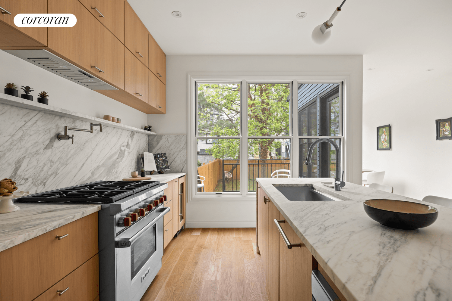1498 Greene Ave is a newly renovated Two-family Townhouse in Bushwick, Brooklyn. A beautiful 2,590 square feet, light-filled residence that masterfully blends luxurious design, thoughtful layout, and versatile outdoor space. This expansive 5-bedroom, 3 full bath, 2 half bath home offers not just one, but three private outdoor spaces- all for entertaining, relaxing, or enjoying the serenity of your lush, southeast-facing garden.