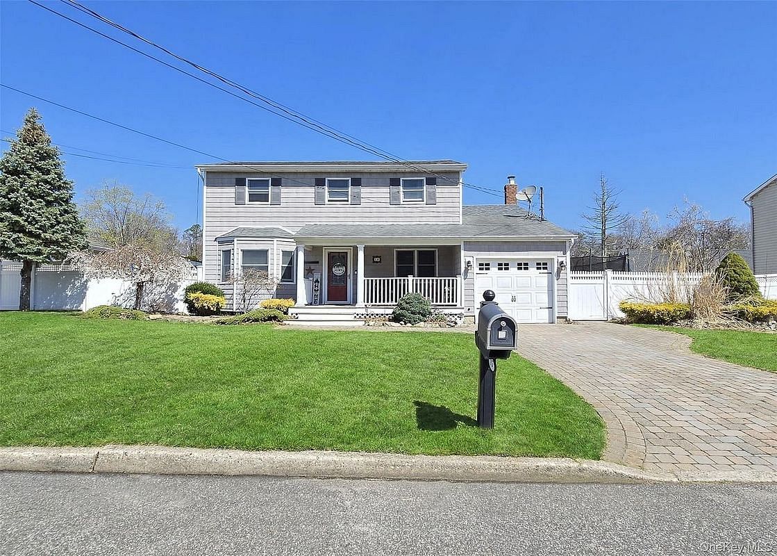 This Charming & Lovely 3Br Colonial Is Located In The Sachem School District. Hardwood Flooring & Ceramic Tile Throughout! The Main Floor Features - A Huge Chef's Eat In Kitchen With Granite Counter & Backsplash, Large Center Island With Bar Seating, Stainless Appliances (2Yr Old Fridge, 5Yr Old Dishwasher, 8Yr Old Stove), Plenty Of Cabinets, & Hi-Hats; A Large Dining Rm Off The Kitchen With Slider Leading To Trex Deck & Yard - Great For Entertaining; A Spacious Living Rm With Crown Molding & Gray Wash Accent Wall; A Cozy Den Or Home Office With Wainscotting, Crown Molding, & Ceiling Fan; A Half Bath With Pedestal Sink & Wainscotting; A Nice Size Laundry Rm/Pantry Area With 1Yr Old Washer/Dryer & Double Closet With Shelving/Organizers. The Upper Floor Features - A Spacious Primary Bedrm With Dressing Area & Walk-In Closet; A 2nd Bedrm With Double Closet; A 3rd Bedrm With Crown Molding & Double Closet; An Upper Hall With Computer Nook Area; A Full Bath With Large Quartz Vanity, Tiled Shower/Tub Combo, & Hi-Hats. This Home Also Features A Full Basement Which Can Be Finished For Additional Living Space! Outside, Enjoy Morning Coffee On Your Front Porch With Pillar Columns. The Backyard Is Fully Fenced In Vinyl & Includes A Large Trex Deck With Vinyl Rails & Shed. Other Amenities Include: Andersen Windows Throughout, Plantation Blinds, Partial Attic With Access In Garage, Peerless Burner, Paver Driveway, & IG Sprinklers. Conveniently Located Near Major Highways, Shopping, Dining, Airport, & The LIRR.
