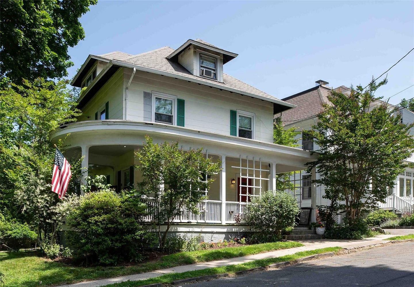 A classic wraparound porch invites relaxing mornings, cozy evenings, and lively conversation—the social heart of the home. Inside, you’ll find 9-foot ceilings throughout much of the home, original hardwood floors, built in book case, and a charming fireplace-preserving the home’s original character.