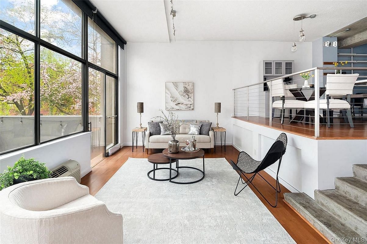 Sophisticated urban living in this rare duplex condo located in a full-service concierge building in the heart of downtown White Plains. This industrial-chic residence has been thoughtfully updated and offers 1,548 square feet of stylish living space. The open-concept layout is highlighted by dramatic floor-to-ceiling windows that lead to a private, enclosed patio. The sleek, modern design features three generously sized bedrooms and two and a half bathrooms. Washer and dryer are conveniently located within the unit. A truly special offering, this is one of only two units of this size in the building, making it a rare opportunity. The property also includes one indoor parking space and a dedicated storage unit. Enjoy the best of downtown White Plains living with shopping, dining, and transportation just moments away and Turnure park 1/2 block away.
