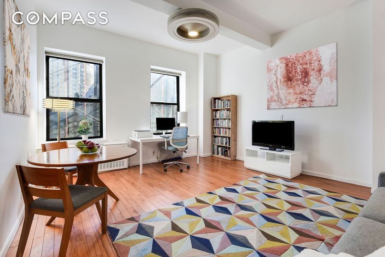 This corner one bedroom home has southern and eastern exposures with oversized windows. Sunlight keeps pouring in all day showcasing open Brooklyn views and the Sacre Coeur church. With a ten foot ceiling, this pre-war home is bright and spacious.