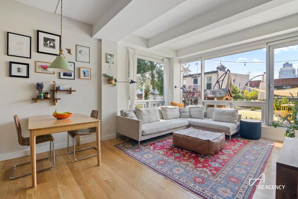 Nestled in the treetops, apartment 3E is a 2 bed/2 bath sanctuary in the beating heart of prime Williamsburg, featuring: 242 sq ft terrace, serene and private thanks to a leafy canopy surround Three exposures (east, south, west) offering light from sunrise to sunset 1,142 sq ft with an incredibly efficient layout (no wasted space) Immaculately maintained condition throughout Excellent storage space The Rialto at 150 N. 5th Street is a boutique 31 unit elevator condo at the corner of Bedford Avenue and a stone's throw to Whole Foods and Apple. One block away on N. 6th Street is the preeminent shopping district featuring Hermes, Chanel, D.S. & Durga, Nike, Glossier, and more, and you are two blocks from the L train at N 7th Street.