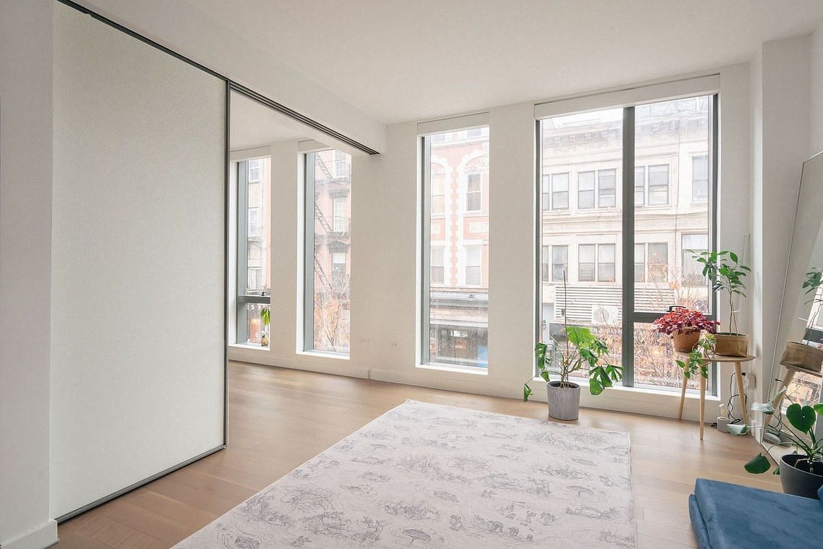 Welcome to Unit 2F - situated in the vibrant heart of the Lower East Side, this thoughtfully designed 1-bedroom/ 1-bathroom condo blends modern style with everyday practicality. Southern-facing exposure and floor-to-ceiling noise-reducing windows fill the home with bright, natural light throughout the day, while custom wire-brushed oak floors add warmth and character. When privacy is desired, elegant Italian-made Rimadesio sliding doors effortlessly close off the space.