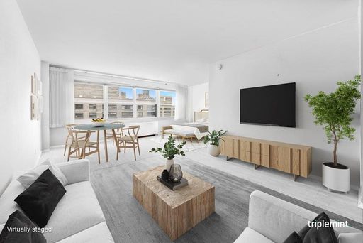 On the penultimate floor of this high rise luxury full service building, facing south with brilliant sun streaming in all day, this spacious alcove studio has been transformed into the most tasteful, high end move-in ready home away from home imaginable. Nothing has been overlooked, held back or left out