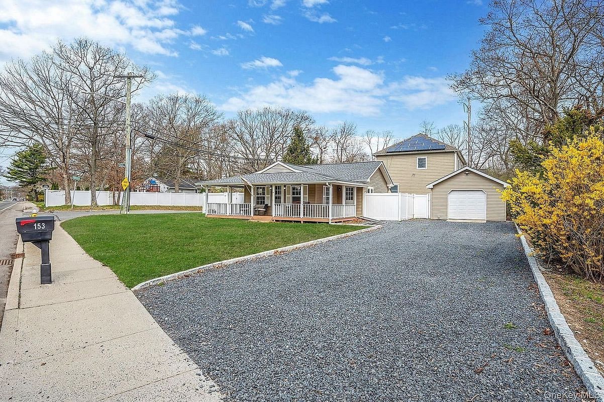 Welcome to 153 Canal Road in Port Jefferson Station, a fantastic opportunity to own a charming, efficiently designed ranch style home in Comsewogue schools. This two bedroom, one bath home offers approximately 696 sqft of living space and sits on 0.17 acres. Inside, the home features a functional open layout with natural light throughout and hardwood floors throughout ideal for easy living or investment opportunity. Outside you'll find an updated front covered porch, detached one car garage and fully fenced backyard for all enjoyment. Recent upgrades to the home include an on demand water heater, central air unit and a recently replace roof. Located just minutes from Port Jefferson Village, ferry access, local parks, shopping and major roadways, this home delivers both accessibility and lifestyle appeal. Don't miss the chance to call 153 Canal Road, Port Jefferson Station home.