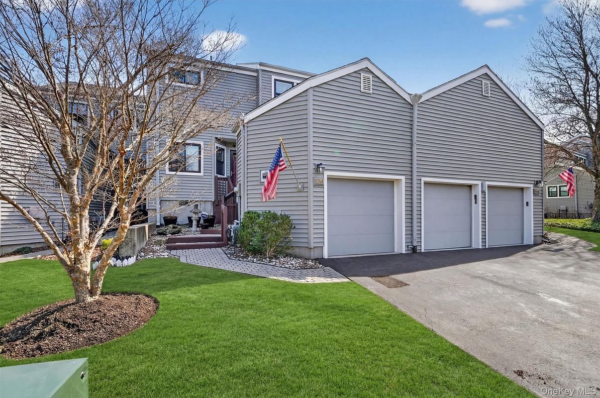 As you enter, the main level welcomes you with a grand living room featuring its own fireplace and sliding doors that lead to your deck—perfect for both everyday living and entertaining. The galley kitchen includes a cozy eat-in nook, complemented by a separate dining area ideal for hosting. A conveniently located half bath and laundry tucked into the hallway closet complete this level. Upstairs, you'll find a well-appointed primary bedroom with a private full bathroom, along with a second bedroom and an additional full bath. A generously sized den provides exceptional versatility—easily used as a third bedroom, home office, or additional living space. Sliding glass doors lead to your private balcony, where you can enjoy peaceful views overlooking the private pond of Fox Hill. This sought-after community offers a range of amenities, including a tennis court, playground, and inground pool. Completing the home is a private one-car garage (which includes a storage loft) and driveway, offering both convenience and additional parking.