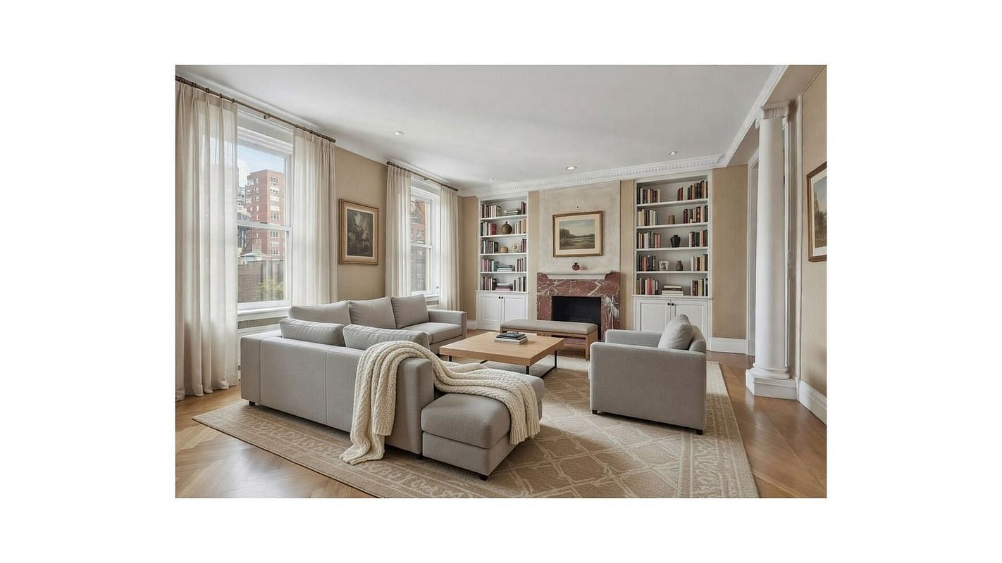 Accessed via an internal staircase or private elevator landing, the 8th floor boasts the primary suite and three additional, generously-sized bedrooms, each with ample closet space, and ensuite bathrooms. The primary suite is a true retreat, complete with a large bedroom, a luxurious dressing room and two bathrooms. A living room, separate den, and wet bar provide ideal spaces for the private living quarters. The library is ideally situated for conversion into an additional bedroom.