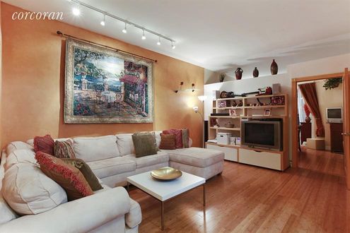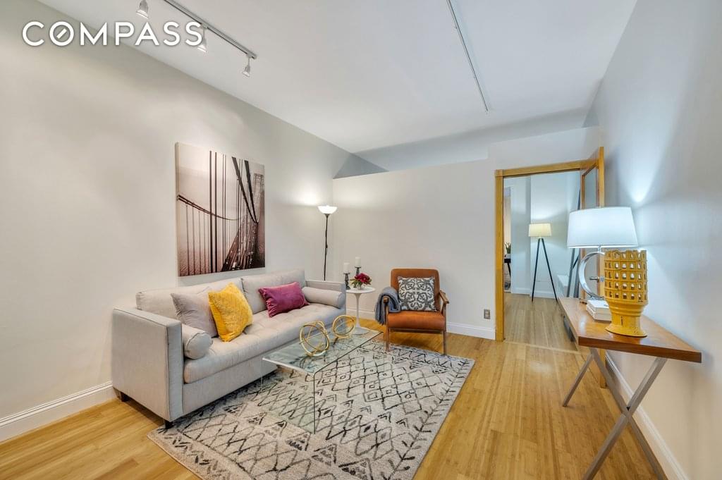 Loft-like gem with ten foot ceilings, hardwood floors and an incredibly versatile layout. Extremely quiet unit, no street noise, and access via either one flight of stairs next to the doorman entrance or the elevator bank.