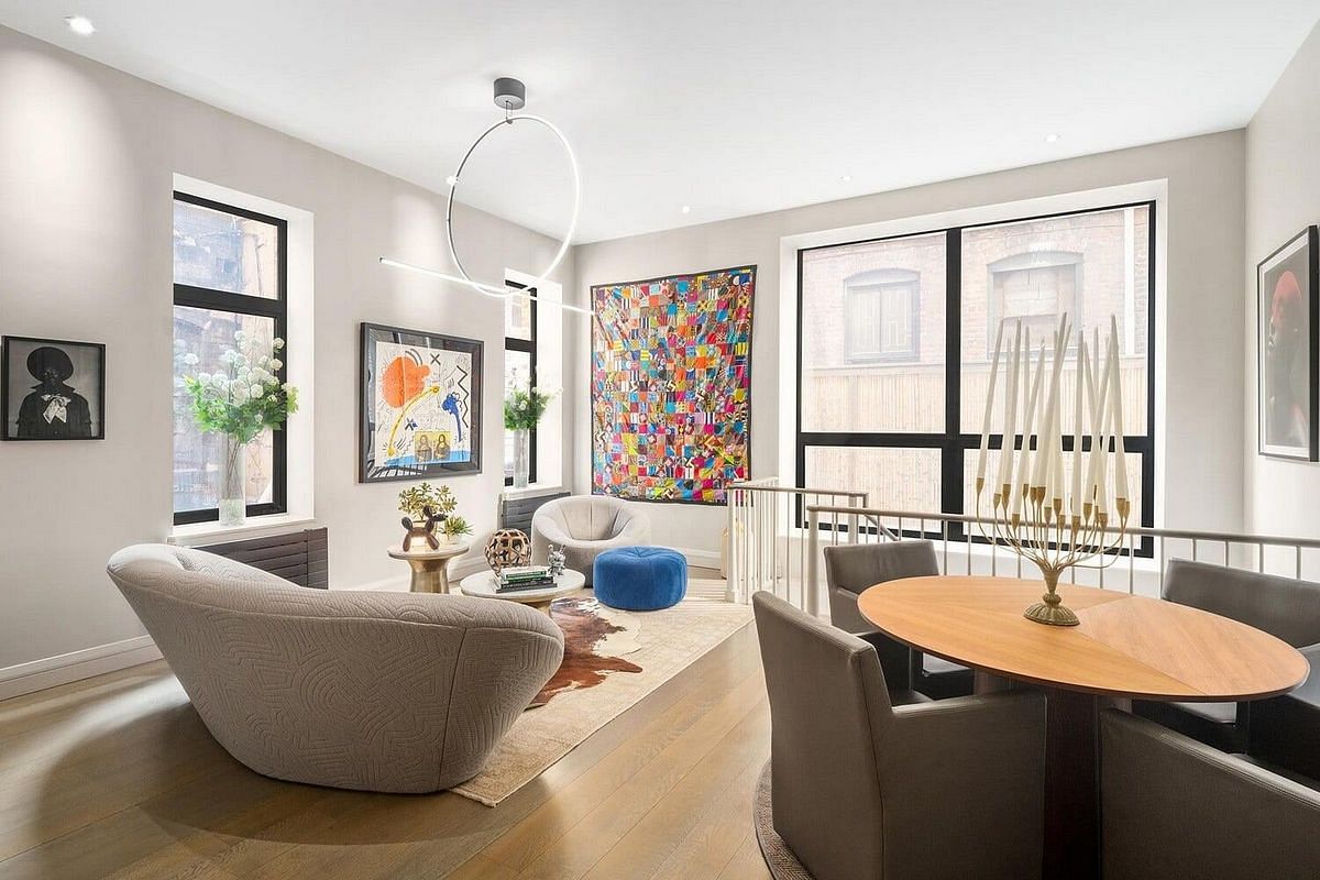 An uncommon level of sophistication will be experienced in this Chelsea Duplex Loft at the Carriage House, a boutique condominium, with an INDOOR PRIVATE PARKING SPACE INCLUDED! This townhouse-style loft home features 11.5" high ceilings, 7" wide plank solid oak floors, oversized windows, central air conditioning controlled by Nest, two full bathrooms, and offers high-end finishes throughout. The main floor has a large open living/dining room, oversized California closet and coat closet, & Chef's kitchen complete with custom wood cabinetry, top of the line stainless appliances: Wolf gas cooktop and convection oven, Subzero refrigerator, and Bosch dishwasher. Also on the main level is a spa-like bathroom featuring Carrara and Absolute White marble accents, Zuma soaking tub, radiant heating and a separate enclosed shower with rain fixture. On the lower level, the tranquil bedroom suite with additional sitting area has a walk-in California closet plus a large additional closet, a tastefully renovated full bathroom featuring custom Carrara and Absolute White marble shower, and a Bosch washer and dryer closet located just outside the bath. And finally, a small private patio provides a little outdoor space for you to take in some fresh air or add a bit of greenery to your decor. The Carriage House has a common landscaped roof deck complete with furniture and grill, as well as part-time doorman/superintendent, video intercom, private parking garage and storage (each unit includes one bin). Prime Chelsea location convenient to 1, M, F, E and C trains, 23rd Street bus and Whole Foods, Fairway Market, Trader Joe's and more!
