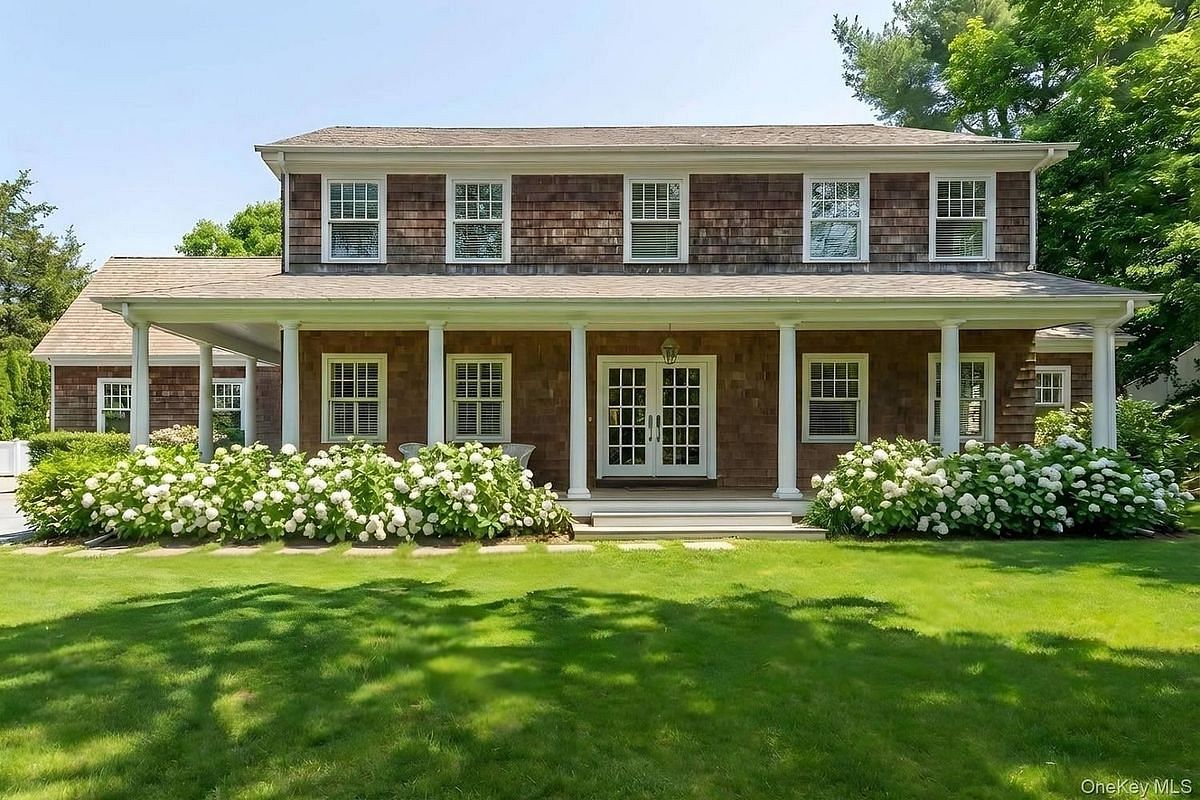Gracious two-story traditional is conveniently located a very short distance to shopping, dining, and Jitney. This home is less than two miles to coveted Beach Lane and is centrally located between Bridgehampton, Sag Harbor and East Hampton. Built in 2006, the beautifully maintained 3,200+/- sq. ft. home has four inviting bedrooms and three and a half immaculate baths. A light-filled open first floor plan includes the living room with gas fireplace, dining area, media room and large kitchen with generous counter space and high end stainless steel appliances. Also on the first floor is a private guest suite which opens up to the sprawling mahogany deck. Upstairs is the master suite with vaulted ceiling and a beautiful marble bath featuring a two person air tub, frameless glass-enclosed shower with built-in bench, and double vanities. Two additional bedrooms are also on the second floor, along with a full size laundry room. Outdoors in the private, well landscaped grounds, enjoy the heated gunite pool and year-round hot tub. Barbecue and dine on the mahogany deck, or relax on the wraparound porch. Additional amenities include a fully finished basement, central air, outdoor shower, two car garage and central vacuum.