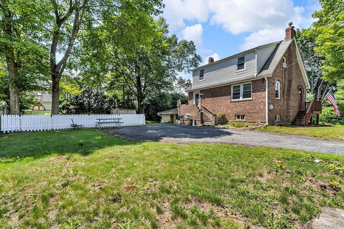 Rare find brick home with solid concrete construction. Old world charm with many circle top doors. Corner level lot, with ample outdoor space, and large parking area. Main floor features 9-foot ceilings, living room with masonry brick fireplace. Den has the option for first floor bedroom with possible full bath. Second floor has primary bedroom, and two additional bedrooms and full hall bath. Basement is unfinished with utilities, walks into a flex room. Flex room can have Mixed commercial uses including a conversion into a garage. It has separate entrance. Offers Somers schools, walk to post office and retail store. Easy access to Rte. 684, Taconic Parkway, and Metro North Railroad. Low taxes and Basic STAR exemption amount is $1,447.