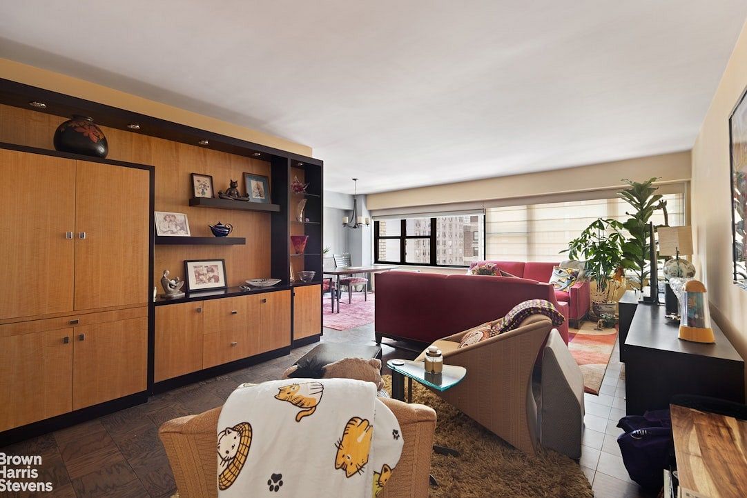 Facing west with great light and open views of Murray Hill's historic townhouses, is your first impression when you step into this spacious one bedroom, one and a half bath home with endless possibilities. As you enter the apartment there is a dedicated foyer with two closets leading to a large living room with an adjacent dining alcove that can be converted to a 2nd bedroom. The primary bedroom with an en-suite bath is large enough to house a king-sized bed and has three ample closets and a wall of tastefully designed built-in cabinetry. There is a windowed galley kitchen facing south, a powder room for guests, parquet wood flooring and an abundance of closet space. Don't miss the opportunity to make it your own.