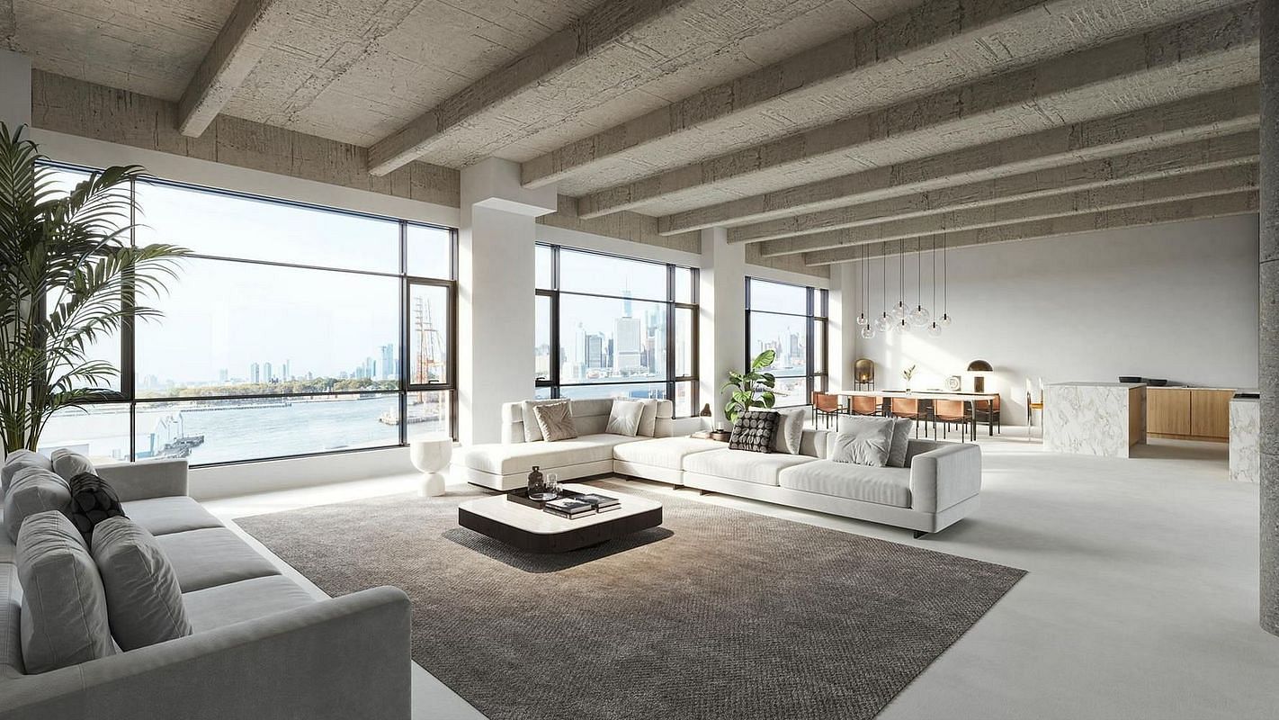 The Red Hook Lofts is a collection of 70 exquisite studio to four-bedroom residences and customizable white box dream homes on the Red Hook waterfront in Brooklyn, offering incredible value for the space and the quality. Extensive amenities include a 24-hour attended lobby with lounge, on-site superintendent, a state-of-the-art fitness center, wellness suites equipped with private shower, sauna, bicycle storage and common roof deck with two lounges. These exceptional loft homes welcome you into their light-filled, harmonious spaces with their grand proportions, supersized layouts, soaring 12-to-16-foot ceilings, double-glazed steel windows, phenomenal outdoor spaces and iconic VIEWS. By retaining the building's original concrete structural expression and exposed ceilings and columns, these contemporary lofts are incredibly open and airy.
