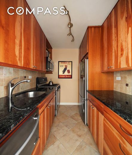 Spacious high floor alcove studio with glass sliding door separating bedroom area, and a wall of windows facing East with a glimpse of Central Park. Lots of sunshine and bright all day. Renovated kitchen and bathroom. New wood plank floors. Large closets and more storage in the dressing area. Full service building with 24-hour doorman, concierge, fitness center, basketball court, common storage, bike room, laundry facilities. Minutes to Lincoln Center, all modes of transportation & Upper West Side Cafs. All utilities included. Pied a Terre allowed.
