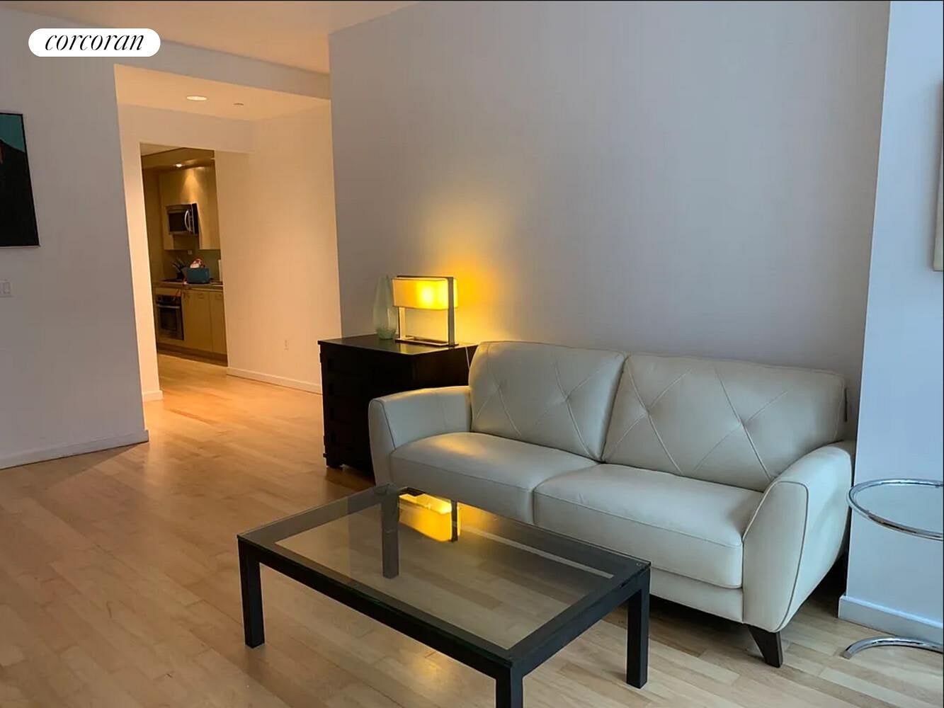 Beautifully furnished and decorated large studio facing east in a newly constructed condominium, Broadway on the Square, located in the heart of New York City, Times Square. High-end finishes including High Ceilings, Hardwood Floors, Limestone Bath with Wenge Tone Vanity and a Custom-Designed Stainless Steel Basin, a truly unique Open Kitchen With Granite Countertops, bright Floor-to-ceiling Windows, Full-Height Glass Backsplash, Miele Designer Kitchen with Bosch and Sub-Zero appliances and washer/dryer in the unit. Full Service, Luxury Condominium with 24 Hour Concierge & Doorman. Amenities Include: Entertainment Lounge With Billiards, Putting Green, Virtual Golf, Fitness Center, Valet and Video security and a Fully-Equipped Conference Center.