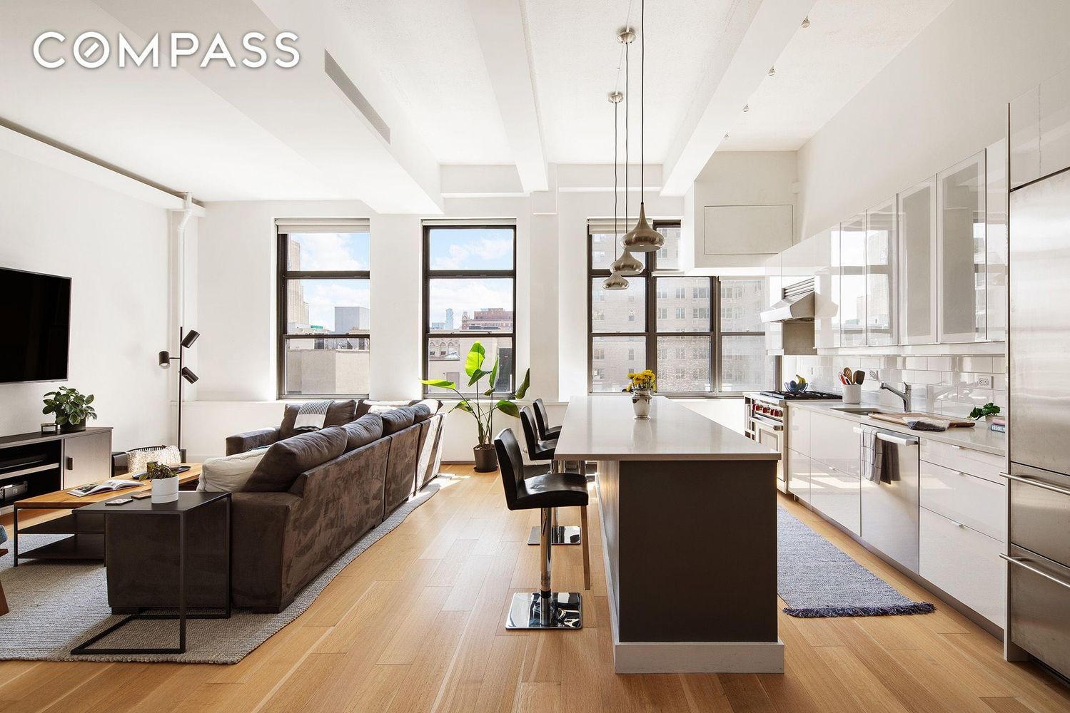 Residence 6C is a stunningly renovated loft located in one of Chelseas most iconic and historic pre-war buildings originally built in 1919 as the publishing factory for Street and Smith. Arrive inside this exquisite home and be captivated by soaring 12-foot beamed ceilings and an abundance of natural light streaming in from its coveted southern exposure which perfectly frames views of the Freedom Tower.