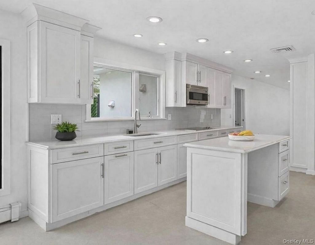 Privately set on a beautifully landscaped acre, this exceptional four bedroom ranch is approached by a long driveway, offering both privacy and a striking first impression. This beautiful home blends timeless architecture with modern updates, highlighted by soaring ceilings, walls of glass, skylights, and wide-plank white oak flooring that create a light-filled, open atmosphere throughout.