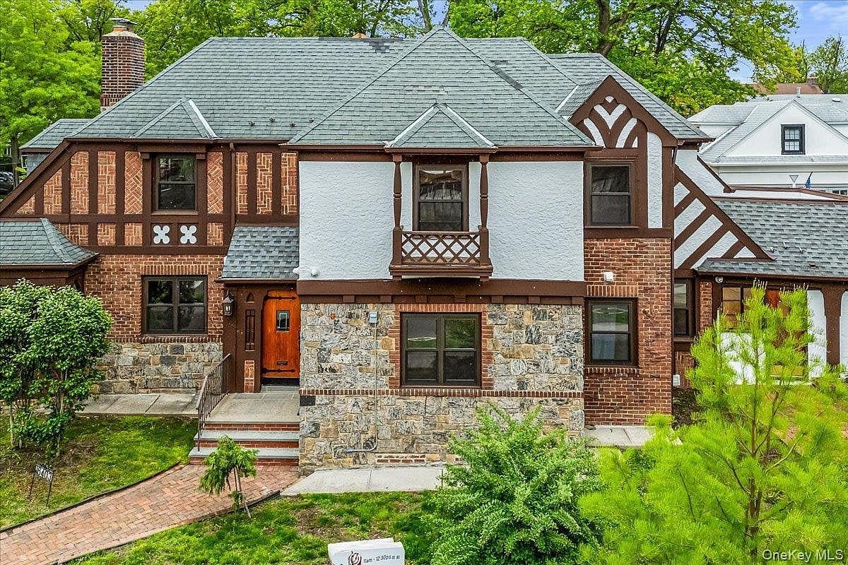 North Flushing Tudor-style mansion plus an independent 300-plus-square-foot office or studio with a full bathroom. Southward facing lot covering an area of nearly 5,000 square feet. The living area is 2,500 square feet, with 4 bedrooms, 2 living rooms, 3 full bathrooms, 2 half bathrooms plus a sunroom, and independent access to the basement. Classic Tudor architecture, a perfect combination of historical charm plus modern comfort! Newly renovated interior and exterior paint, new windows, new rain gutters, upgraded kitchen and bathroom equipment. Comfortable and spacious, ready to move in. Convenient transportation: near Q16 bus stop and just minutes from LIRR train station (35 minutes to Manhattan). Close to supermarkets, parks, and highly rated school district.