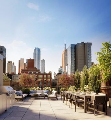 The Penthouse Collection at The Lexi offers an unparalleled blend of luxury, modernity, and architectural elegance in the heart of Manhattan. This exclusive 2-bedroom, 2-bathroom penthouse redefines sophistication, boasting two private terraces with jaw dropping views of the iconic New York City skyline, with the Empire State Building as a striking focal point from every room. Upon entry, grand custom walnut doors reveal a breathtaking open-concept living space, where approximately 11-foot ceilings and expansive floor-to-ceiling West facing double-paned windows invite abundant natural light all day. The focal pointa striking eat-in waterfall islandsets the stage for effortless entertaining. The gourmet kitchen, a culinary masterpiece, is adorned with Cristallo white quartzite countertops and backsplash, while custom Italian walnut oak lacquer cabinetry conceal a fully integrated Miele appliance set. Step out onto the 22-foot wide balcony that spans across the great room, or ascend the elegant glass staircase to the crown jewel of this residence: a 637 sq. ft. private rooftop terrace. Outfitted with concrete pavers and an outdoor kitchen, its perfect for alfresco dining and entertaining against the backdrop of New Yorks majestic skyline. The serene primary suite accommodates a California king-sized bed and features a generous walk in closet. The en-suite spa-like bathroom is a sanctuary unto itself, featuring Saint Laurent marble tile flooring, honed marble countertops, gold brass fixtures, and a walk-in wet room with a rain shower and a deep soaking tub. The second queen sized bedroom is equally refined, offering ample closet space situated across from your second full bathroom, which is outfitted with honed marble floors, Fior Di Bosco countertops, a custom Italian Interni oak vanity, and sleek chrome Dornbracht fixtures. Throughout the home, custom wide-plank white oak floors, high-efficiency Mitsubishi VRF multi-zone heating and cooling, and an in-unit Miele washer/dryer provide the pinnacle of modern comfort and convenience. Private storage unit comes with the unit for an added level of convenience. Designed by Isaac & Stern Architects in collaboration with DNArc P & Design Studios, The Lexi presents a full suite of premium amenities, including a state-of-the-art fitness center, a stylish resident lounge, co-working spaces, a pet spa, a bicycle room, and a beautifully landscaped furnished rooftop deck with BBQ stations and panoramic views of the city. Located in the heart of Manhattans coveted Kips Bay, The Lexi is moments away from the best the city has to offerTrader Joes, Whole Foods, Michelin-starred dining, vibrant nightlife, and cultural destinations. Madison Square Park and transportation options including the R/W/6 subway lines are just steps away.
