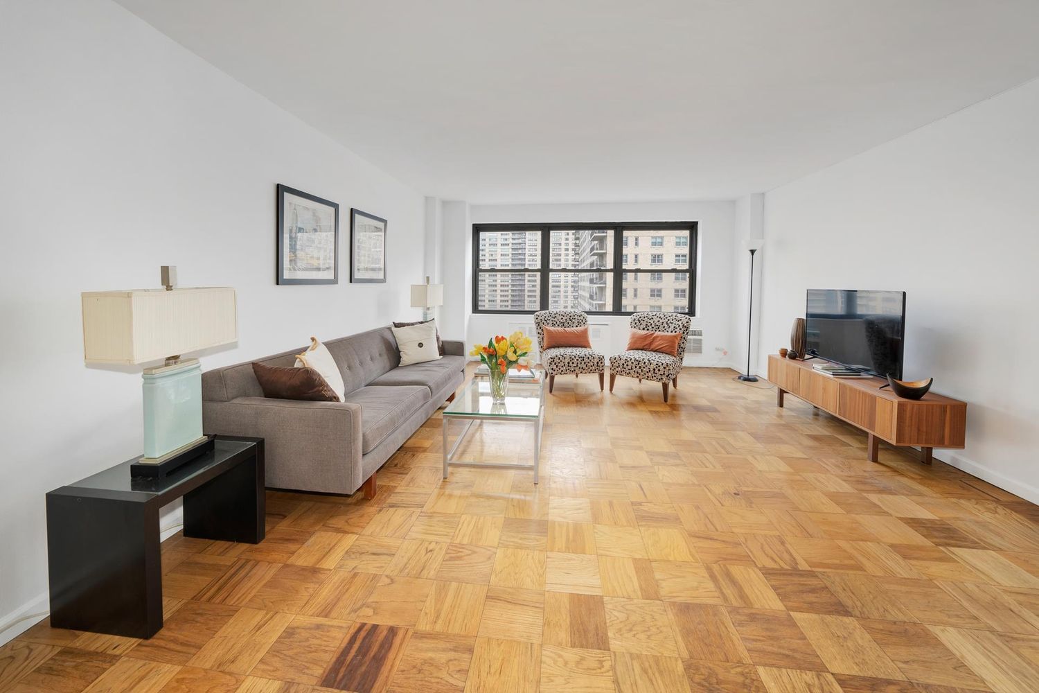 This delightful one bedroom at Lincoln Towers is situated on the 16th floor and boasts Eastern exposure with open city views and bright light throughout the day. The large living room has enough space for comfortable dining and the gracious bedroom can easily house a work/media area. The bathroom has been renovated with beautiful decorative patterned tiles and the remodeled kitchen has white cabinets, marble counters and GE/LG appliances. There are 5 generous closets.