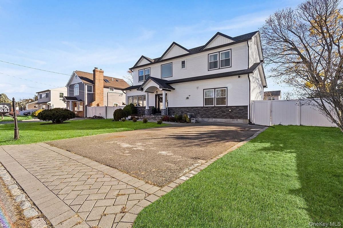 Welcome to 166 17th St, West Babylon an impressive, beautifully crafted 4-bedroom home showcasing a striking exterior, charming front elevation, and exceptional curb appeal. Step inside to discover soaring 10-foot ceilings, solid hardwood floors throughout, and a thoughtfully designed layout that blends comfort with high-end finishes. The chef's kitchen is the centerpiece of the home, featuring a 36" stove with vent hood, built-in microwave, a massive 10-foot island, and abundant workspace ideal for cooking and entertaining. Each room is designed with premium Rockwool insulation in all interior and exterior walls, enhancing comfort, quiet, and energy efficiency. The home continues to impress outdoors with a well-maintained yard and inviting exterior spaces perfect for relaxing or hosting. With quality mechanical upgrades throughout and located near parks, shops, dining, and excellent neighborhood conveniences, this property delivers luxury, practicality, and an unbeatable West Babylon lifestyle.