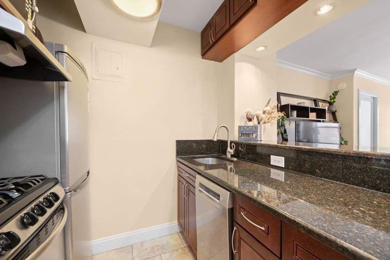 Upon entering, youll find a welcoming foyer outfitted with a spacious coat closet, leading into a recently renovated open kitchen. Here, premium stainless steel appliances cater to your inner urban chef, and the expansive living area is perfectly designed for both relaxation and entertaining. Picture yourself hosting friends or enjoying a quiet evening on a full-sized sofa, all set against the mesmerizing New York skyline.