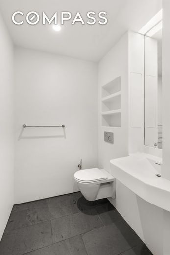 The south facing, primary suite faces onto Charles Lane, a quiet cobblestone alleyway, and features a luxurious bath adorned with Vermont green slate floors, a sculpted Corian vanity, and a spa-like shower. The 2nd bedroom also faces south, and features an ensuite bath with stall shower. A separate powder room is ideal for guests. The apartment also features a generously sized home office, perfect for work-from-home days.