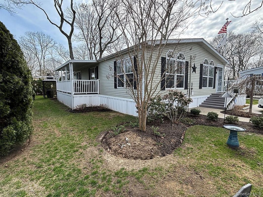 Welcome to Glenwood Village a 55+ Manufactured Home Community Offering a 49 Year Lease starting at $800 per month. This absolutely stunning, turn-key, 3 bedroom, 2 bath home is awaiting its new owner. The interior of the home has been completely renovated and offers spacious options for modern living. All new Bosch Mini Splits with Heat & Air in 2025 - Full Warranty, New Hot Water Heater, New Roof & Gutter Guards in 2023, Walk-In Closets, Crown Molding, Electric Fireplace, Blinds, Quartz Countertops All New Appliances, New Washer & Dryer. Fully Renovated Baths with Quartz Countertops. Deck with Awnings, Shed, Fully Landscaped with Privacy, Gazabo & Sprinkler System - Truly a Gem!