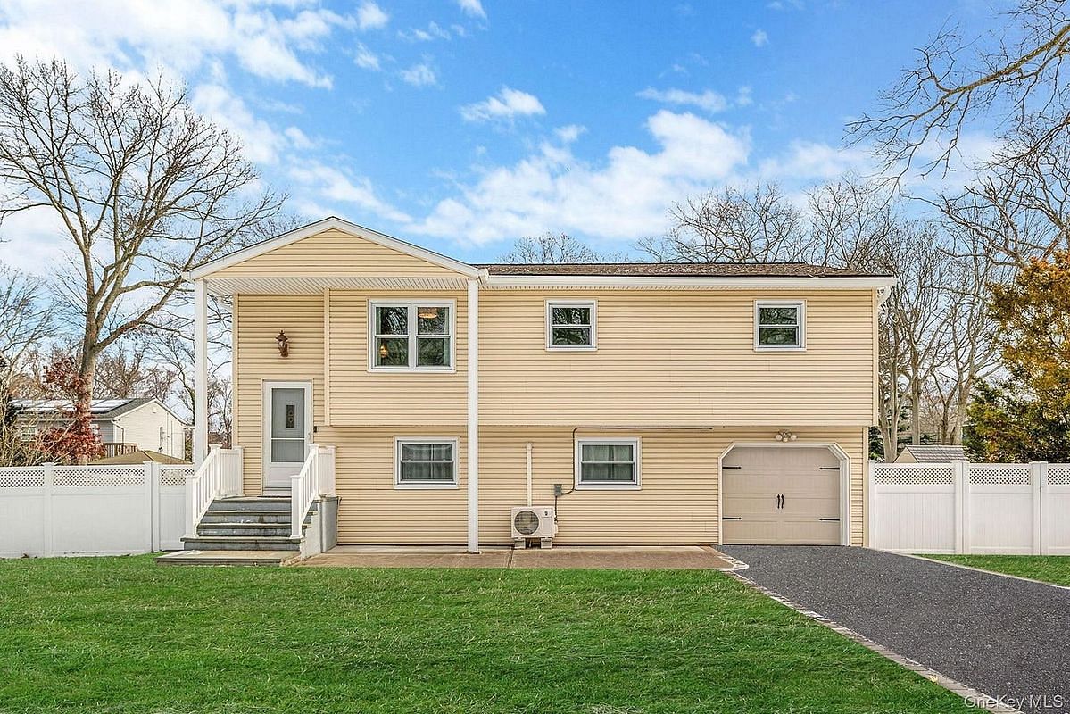 No stone left unturned in this gorgeous, meticulously maintained Hi-Ranch located in the desirable Sachem School District! Pride of ownership shines throughout this super clean, spacious home offering a thoughtful blend of timeless design and modern updates. The upper level features a beautifully renovated eat-in kitchen with breakfast peninsula, stainless steel appliances, soft-close cabinetry, Quartz countertops, gas cooking, pantry storage, and an open flow into the formal dining area and living room—perfect for everyday living and entertaining alike. Light hardwood floors upstairs were freshly refinished in 2025, enhancing the bright and airy feel throughout. Three bedrooms, all with hardwood floors, plus a stunningly renovated bathroom (completed just three years ago) featuring a dual vanity, elegant tile work, and built-in shelving for additional storage round out the upstairs. Pull-down stairs provide easy access to a full attic for even more storage. The fully renovated lower level (2021) was completely gutted and reimagined, offering luxury vinyl plank flooring, a brand-new full bathroom, sliders leading to the back patio, a fourth bedroom, and a spacious open living area—ideal for guests, extended family, or flexible living space. There's also a 1 car garage, an oversized driveway, and a spacious backyard with a shed.