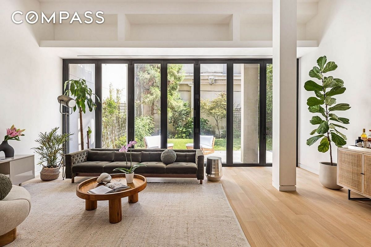 Located at the crossroads of Boerum Hill and Cobble Hill and designed with scale, sophistication and comfort in mind, this expansive, lofty home with modern design spans approximately 1,670 square feet. It features an exceptional layout, soaring 14-foot ceilings, and a lush private garden and patio totaling approximately 1,180 square feet.