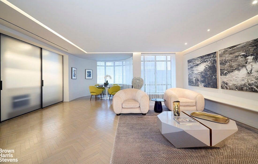 The meticulously renovated 2 Bed/2 Bath apartment is an entertainer's delight designed by Australia's acclaimed architect, Iain Halliday. The great room faces South overlooking the MOMA garden. Sleek, sliding glass doors by Boffi create a striking architectural feature in this space. When opened, the doors reveal a thoughtfully designed kitchen featuring a coffee station along with Miele, Sub-Zero, and Fisher & Paykel appliances. Adding to the International Style sensibilities of the apartment, the John Royère 'Ours Polaire' sofa and chairs (c 1930s) and Eames dining set can be discussed with the owner.
