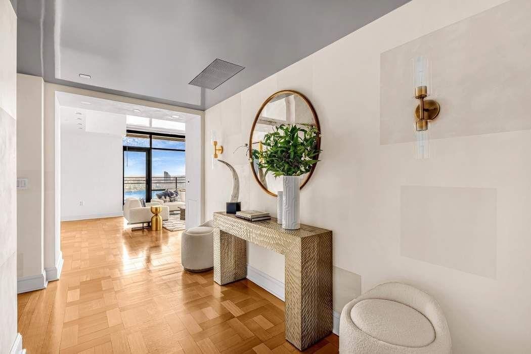 Step from your private elevator landing into the 4 bedroom, 5.5 bathroom, starting with the spacious foyer. The expansive living room features a wood-burning fireplace and opens to an east-facing terrace, perfect for relaxing with a view. A library connects to the primary bedroom suite, which offers two full marble baths, a dressing room, and three walk-in closets for ultimate comfort and privacy.