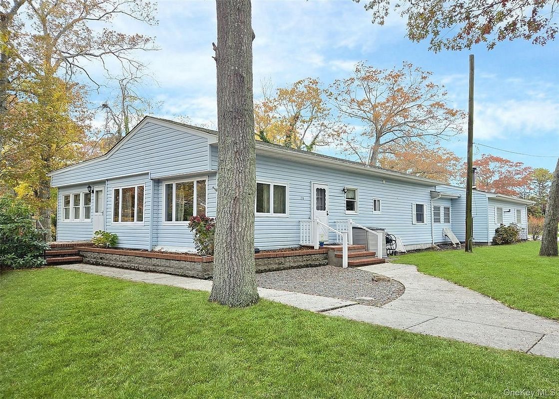 Tucked away on a quiet cul-de-sac overlooking Peconic Lake, this 2-bedroom, 1-bath ranch sitting on a ½ acre is perfect for anyone who likes privacy—or just wants to avoid their neighbors.