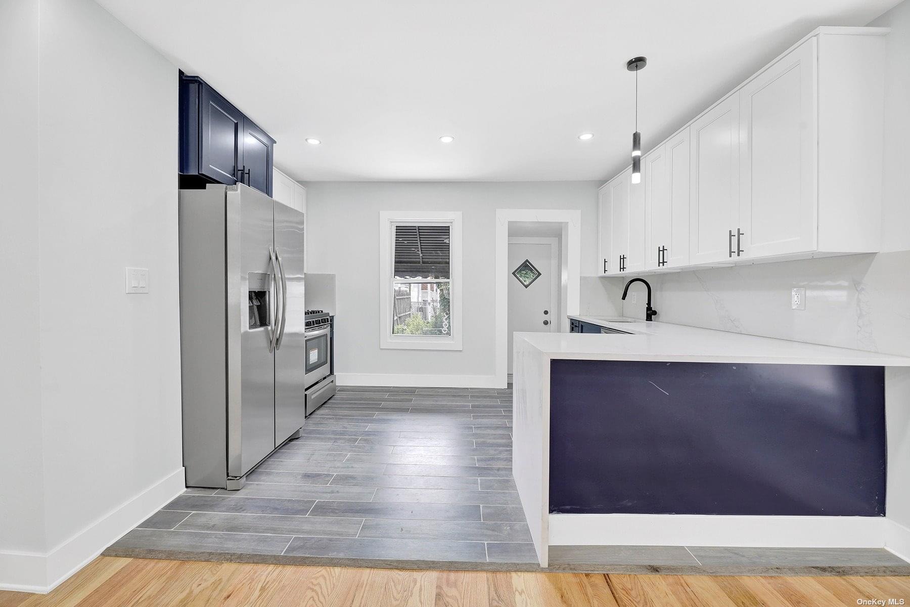 Space, style & modern luxury come together at 1738 East 38 Street. A luxuriously renovated, move in ready single family townhouse nestled on a beautiful picturesque block of Marine Park. Perfect opportunity for buyers looking for space. Open the door and enter an expansive sun drenched formal living area which provides great space for entertaining. The formal dining area leads into beautiful chefs granite kitchen any chef will love. Kitchen features floor to ceiling custom cabinetry, adorned with a full fleet of stainless steel appliances & island for bar stool seating. Up a flight of stairs 3 spacious bedrooms awaits you, each equipped with ample closet space. Down the hall a fully tiled bathroom awaits you.The high ceiling full finished basement has a full bath, designated laundry area and can be used as storage space or additional recreational space. Fully gutted & remodeled by an expert team of contractors featuring select wide oak wood flooring, recessed lighting, brand new electrical, heating & plumbing system throughout. This masterfully re-imaged townhouse is conveniently located with close proximity to major transportation which makes commuting a breeze. Just off Quentin Road, Fillmore Avenue, Flatbush Avenue, Marine Parkway, schools, shopping centers, restaurants, cafes, any other vibrant neighborhood amenities.