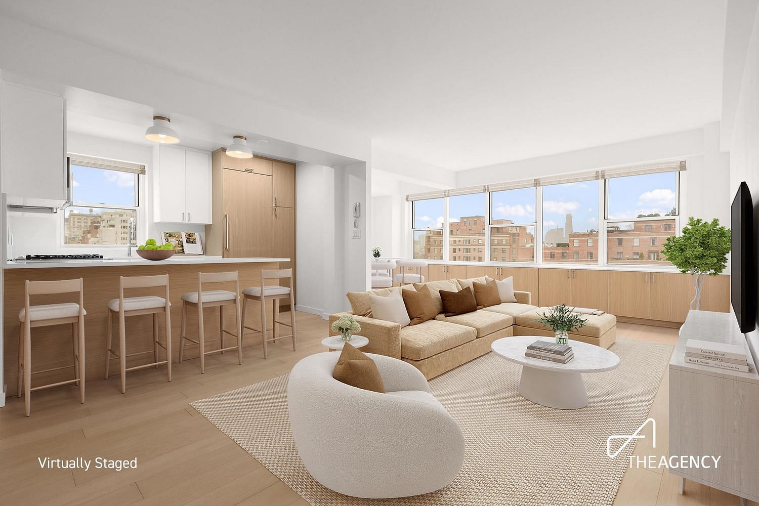 SPONSOR UNIT: NO BOARD APPROVAL. PIED A TERRES and PARENTAL CO-PURCHASE PERMITTED. Stunning City Views and Incredible All-Day Light await in this high-floor, newly renovated, oversized 1BR at The Cambridge. Huge south-facing living room with sweeping views of Greenwich Village Townhouses and landmarks, the Downtown Manhattan skyline, and west to the Hudson River and beyond. Dining alcove with ample room for a full dining table and chairs. Beautifully renovated open windowed kitchen features Blomberg, Monogram and Caf Appliances, with a deep sink, white quartz countertops and abundance of storage space in custom cabinetry. Large Bedroom offers two more great closets, and exposures to the East and North, with iconic Midtown views. Newly refinished white oak hard wood floors throughout. Newly renovated windowed subway tile bathroom. The Cambridge House is impeccably run, and features a full-time doorman, live-in super, laundry, storage, a bike room, a beautiful planted roof deck, newly renovated interiors and a brand new lobby. Conveniently located at the nexus of The Village, The West Village, and Chelsea, with shopping, restaurants, nightlife and subways all at your doorstep. Transfer Taxes Paid by Purchaser.