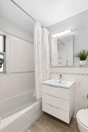 This spacious apartment offers an open, neatly renovated kitchen with a wall of cabinets, granite counter tops, and a dishwasher. Simple and elegant, the renovated bathroom includes a windowed tub/shower, under sink drawers and a large linen closet.