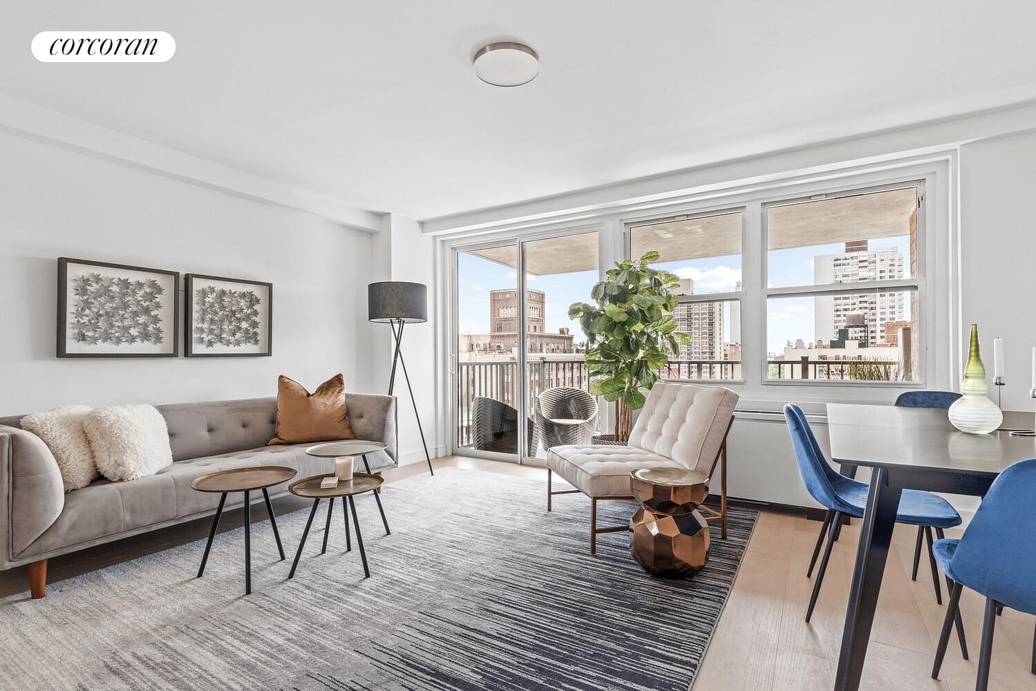 Positioned on a high floor with open exposures to the east and north, this developer renovated two-bedroom, two-bathroom residence captures sweeping city views with a glimpse of Central Park framed through oversized windows. A private 111-square-foot corner balcony extends the living space and invites quiet moments outdoors.