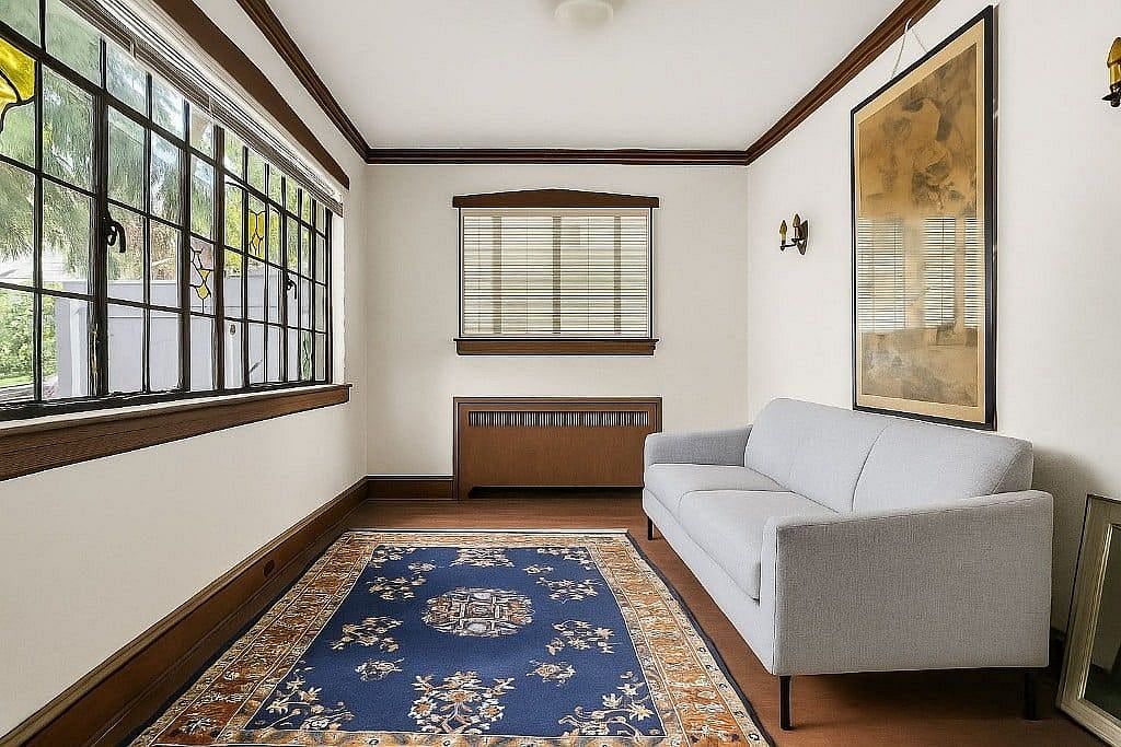 Upstairs, a generously sized primary bedroom anchors the home, accompanied by four additional bedrooms, each filled with character and old-world charm. The bathrooms are true vintage gems, showcasing original Art Deco tilework and authentic period color palettes, a rare find for architectural enthusiasts.