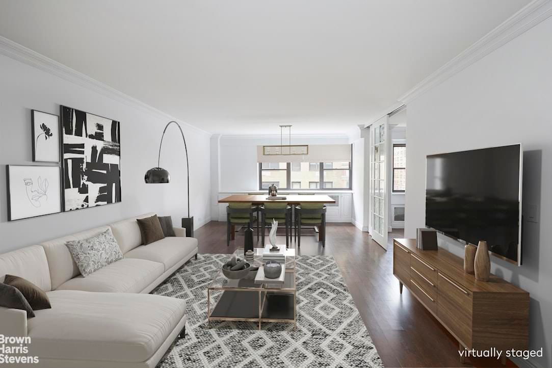 Enter your new bright, airy home and be drawn in by the light into your O-V-E-R-S-I-Z-E-D 25-foot-long living room, wall of large windows, with a much-coveted double exposure providing light and open city views.