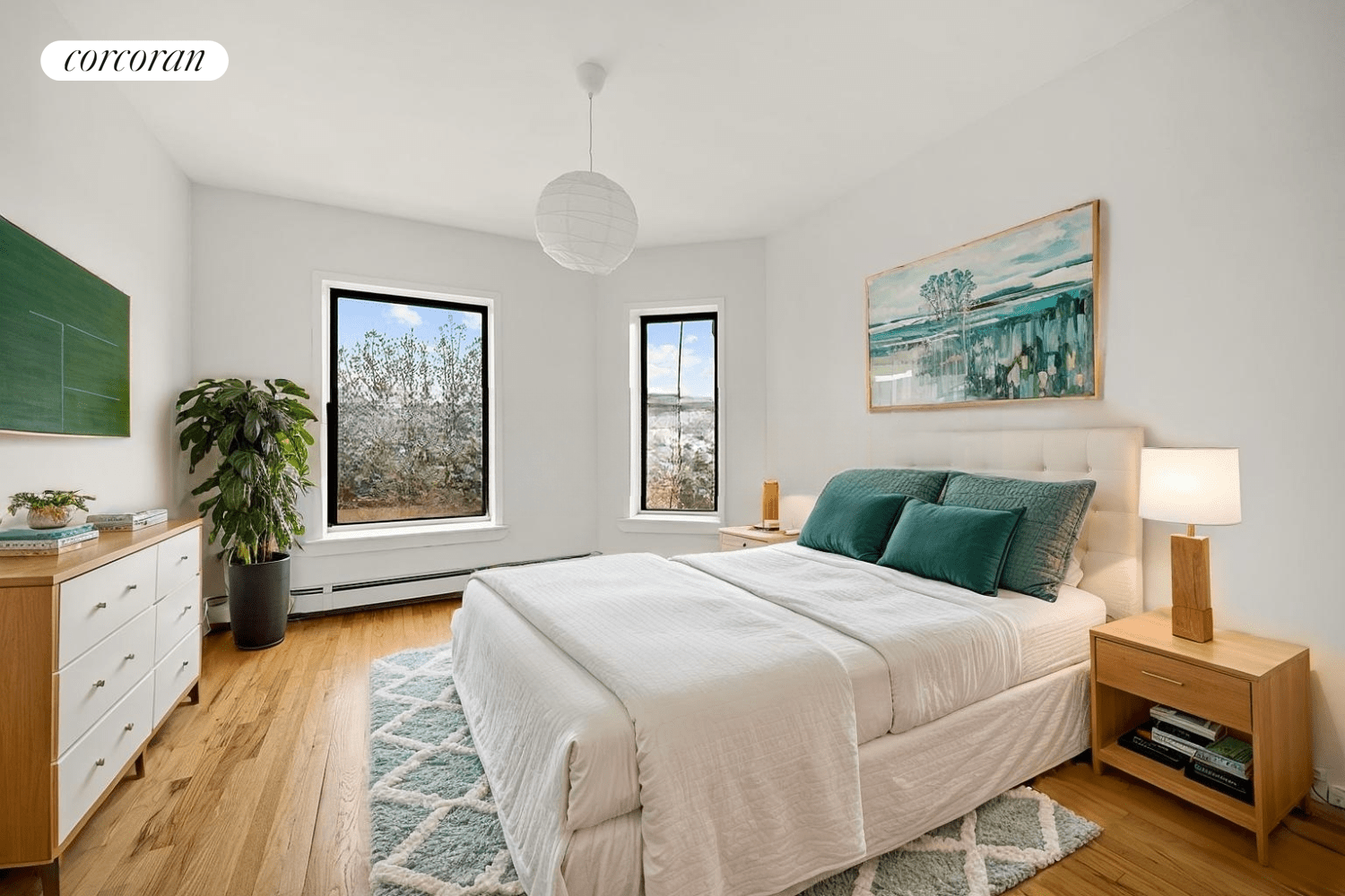 A smaller bedroom gets four windows and has picture perfect views overlooking Brower Park with an oversized closet. The primary bedroom opulently accommodates a KING SIZE bed plus furniture. Above all this unit comes with full size laundry IN UNIT.