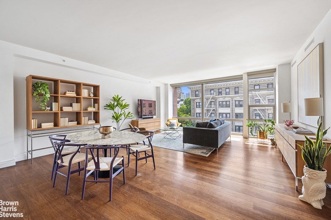 Apartment 4G features 5.5 inch wide-plank white oak flooring, Unitone 2000 video intercom/alarm system, and built-in Sonos surround-sound speakers throughout the apartment. The expansive living room offers ample space for relaxation and entertaining, with enough room to comfortably accommodate a large 12 person dining experience.